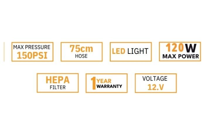 - lighter plug 75cm air hose